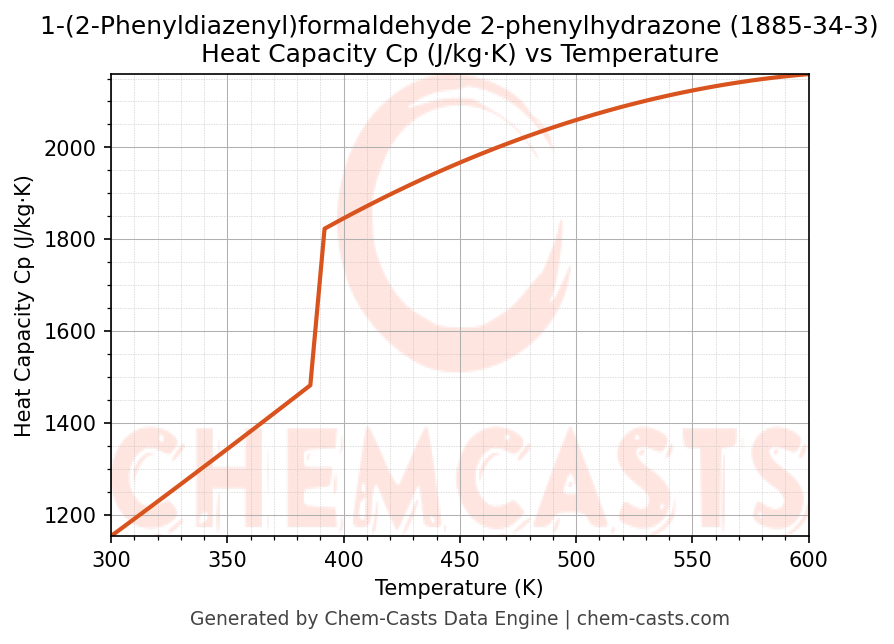 - Specific heat capacity (Cp) indicates the amount of energy required to raise the temperature of 1-(2-Phenyldiazenyl)formaldehyde 2-phenylhydrazone and is critical for energy balance and heat-exchanger design.