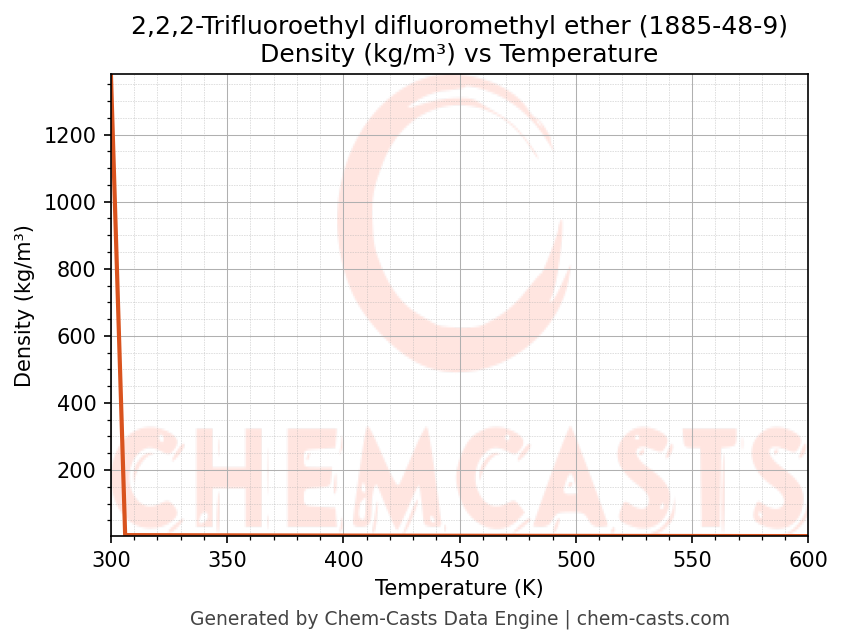 This page presents the temperature-dependent thermodynamic and transport properties of 2,2,2-Trifluoroethyl difluoromethyl ether (CAS 1885-48-9) calculated at a constant pressure of 1 atm (101325 Pa) over the temperature range 250-500 K.