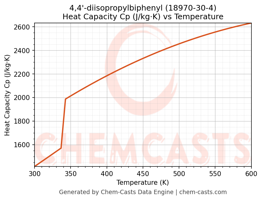 - Specific heat capacity (Cp) indicates the amount of energy required to raise the temperature of 4,4'-diisopropylbiphenyl and is critical for energy balance and heat-exchanger design.