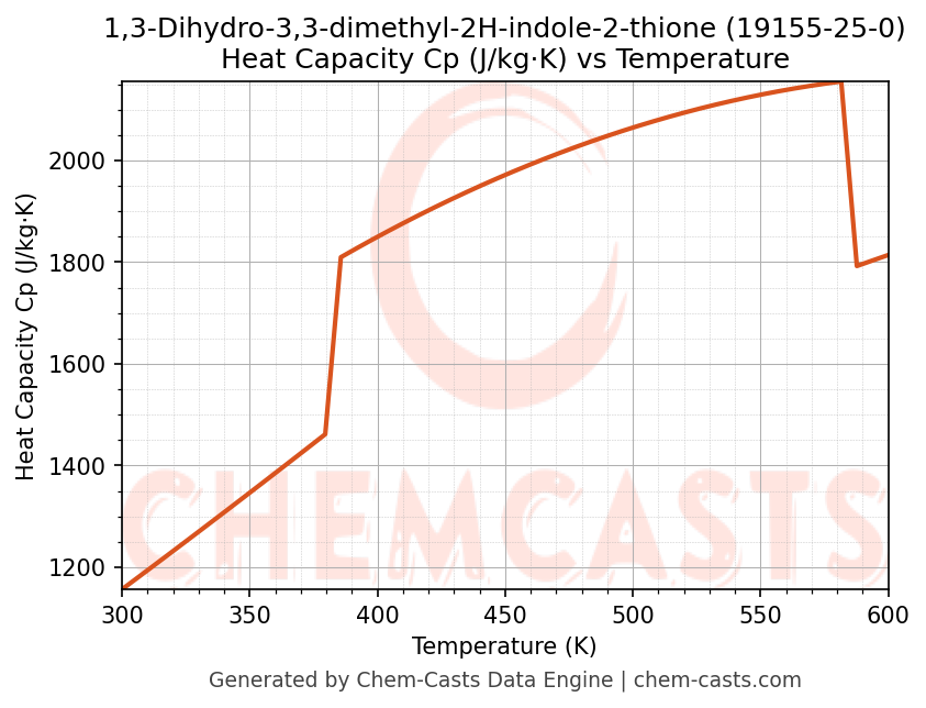 - Specific heat capacity (Cp) indicates the amount of energy required to raise the temperature of 1,3-Dihydro-3,3-dimethyl-2H-indole-2-thione and is critical for energy balance and heat-exchanger design.