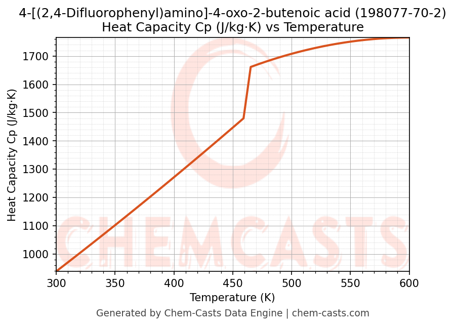![Heat Capacity (Cp) vs Temperature chart for 4-[(2,4-Difluorophenyl)amino]-4-oxo-2-butenoic acid (CAS 198077-70-2)](https://chemcasts-prod.s3.ap-south-1.amazonaws.com/chem_plots_pconst/198077-70-2-cp.png)