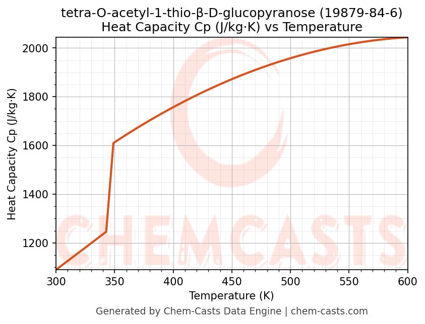 - Specific heat capacity (Cp) indicates the amount of energy required to raise the temperature of tetra-O-acetyl-1-thio-β-D-glucopyranose and is critical for energy balance and heat-exchanger design.