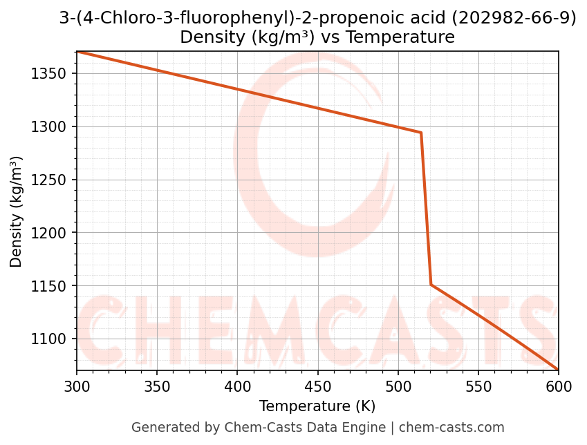 This page presents the temperature-dependent thermodynamic and transport properties of 3-(4-Chloro-3-fluorophenyl)-2-propenoic acid (CAS 202982-66-9) calculated at a constant pressure of 1 atm (101325 Pa) over the temperature range 250-500 K.