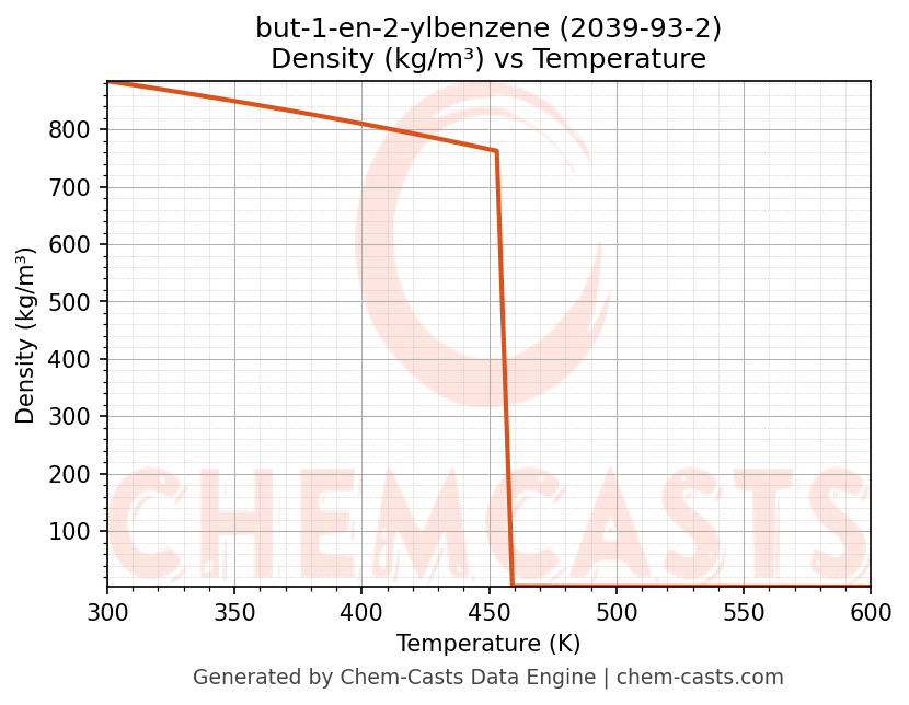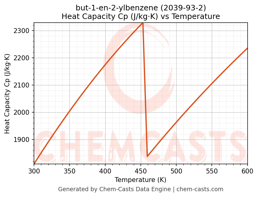 - Specific heat capacity (Cp) indicates the amount of energy required to raise the temperature of but-1-en-2-ylbenzene and is critical for energy balance and heat-exchanger design.