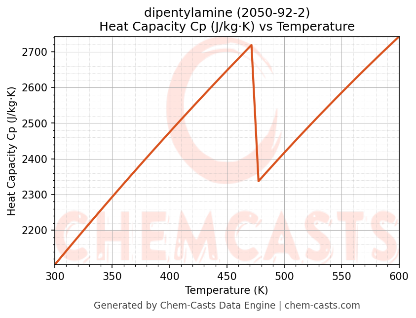 - Specific heat capacity (Cp) indicates the amount of energy required to raise the temperature of dipentylamine and is critical for energy balance and heat-exchanger design.