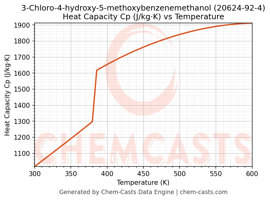 - Specific heat capacity (Cp) indicates the amount of energy required to raise the temperature of 3-Chloro-4-hydroxy-5-methoxybenzenemethanol and is critical for energy balance and heat-exchanger design.