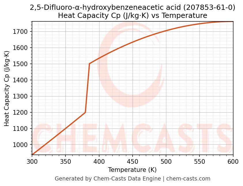 - Specific heat capacity (Cp) indicates the amount of energy required to raise the temperature of 2,5-Difluoro-α-hydroxybenzeneacetic acid and is critical for energy balance and heat-exchanger design.