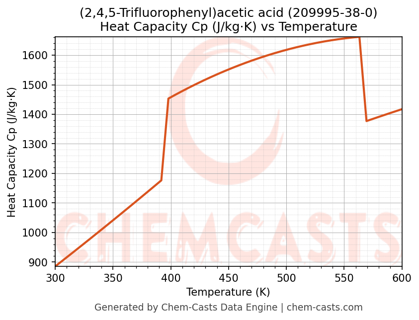 - Specific heat capacity (Cp) indicates the amount of energy required to raise the temperature of (2,4,5-Trifluorophenyl)acetic acid and is critical for energy balance and heat-exchanger design.