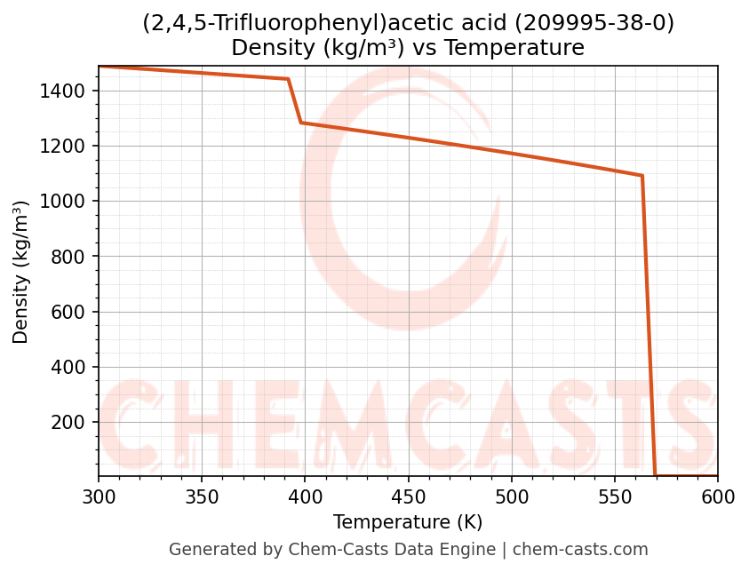 This page presents the temperature-dependent thermodynamic and transport properties of (2,4,5-Trifluorophenyl)acetic acid (CAS 209995-38-0) calculated at a constant pressure of 1 atm (101325 Pa) over the temperature range 250-500 K.