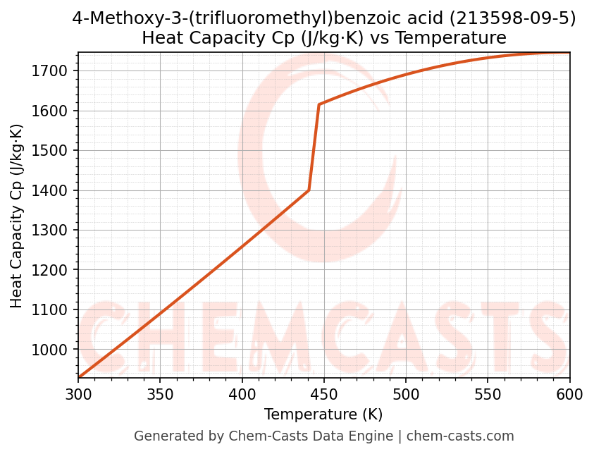 - Specific heat capacity (Cp) indicates the amount of energy required to raise the temperature of 4-Methoxy-3-(trifluoromethyl)benzoic acid and is critical for energy balance and heat-exchanger design.