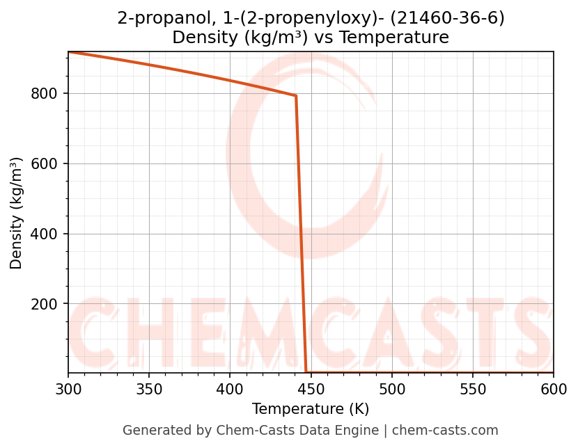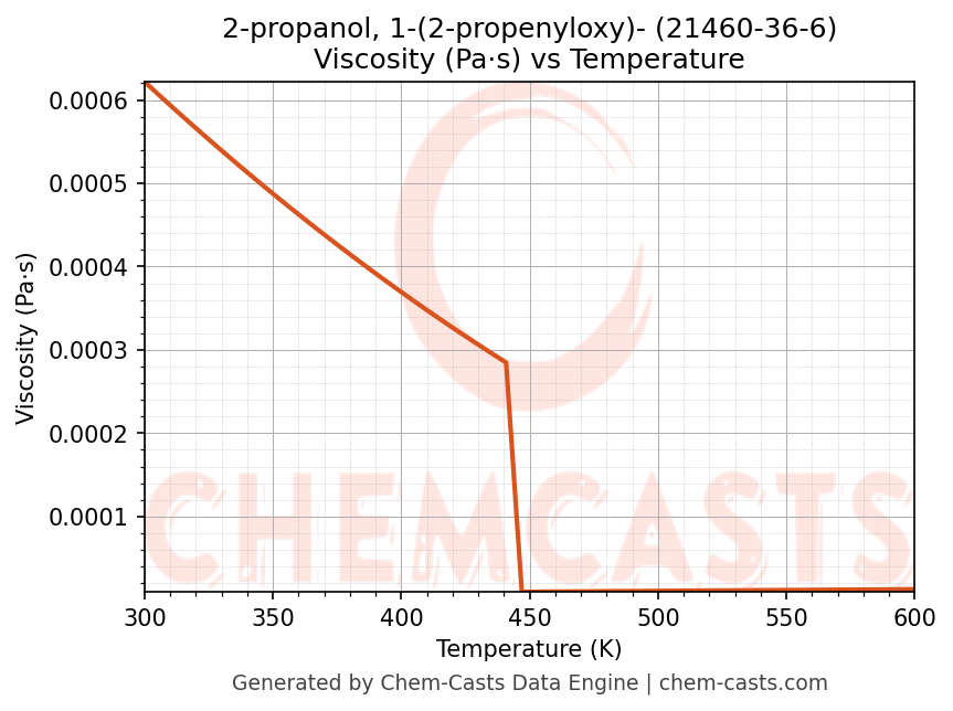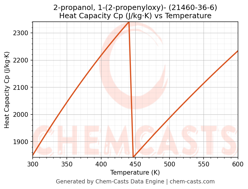 - Specific heat capacity (Cp) indicates the amount of energy required to raise the temperature of 2-propanol, 1-(2-propenyloxy)- and is critical for energy balance and heat-exchanger design.