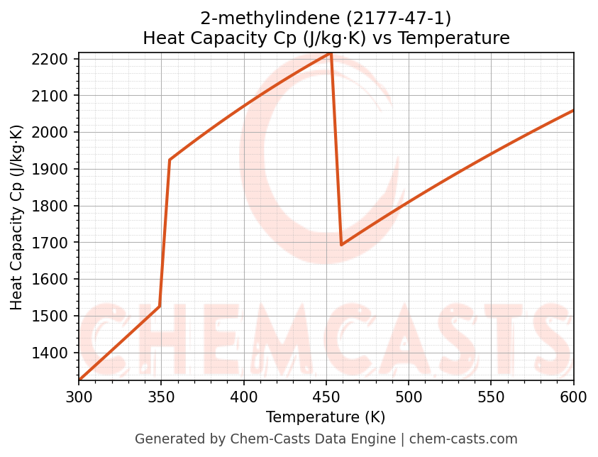 - Specific heat capacity (Cp) indicates the amount of energy required to raise the temperature of 2-methylindene and is critical for energy balance and heat-exchanger design.