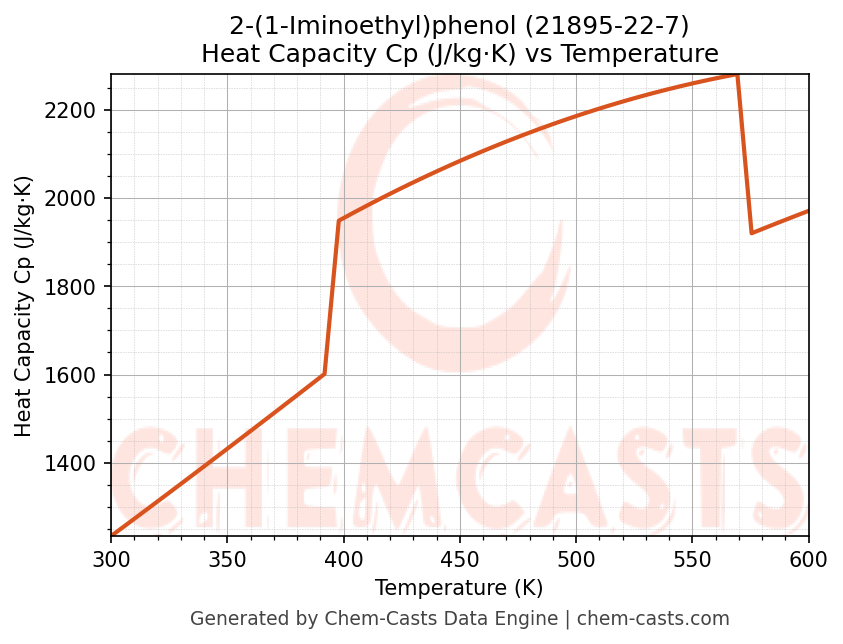 - Specific heat capacity (Cp) indicates the amount of energy required to raise the temperature of 2-(1-Iminoethyl)phenol and is critical for energy balance and heat-exchanger design.