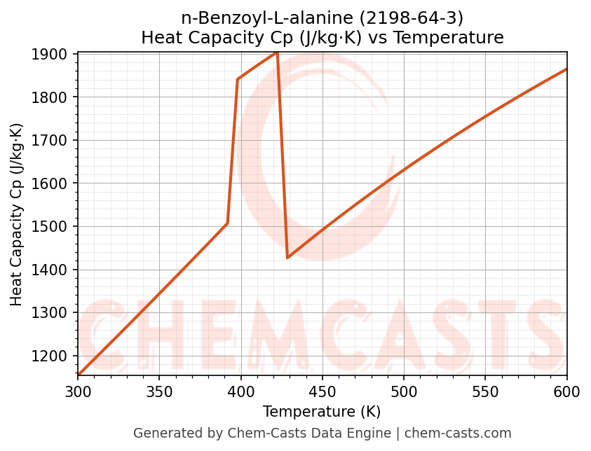 - Specific heat capacity (Cp) indicates the amount of energy required to raise the temperature of n-Benzoyl-L-alanine and is critical for energy balance and heat-exchanger design.