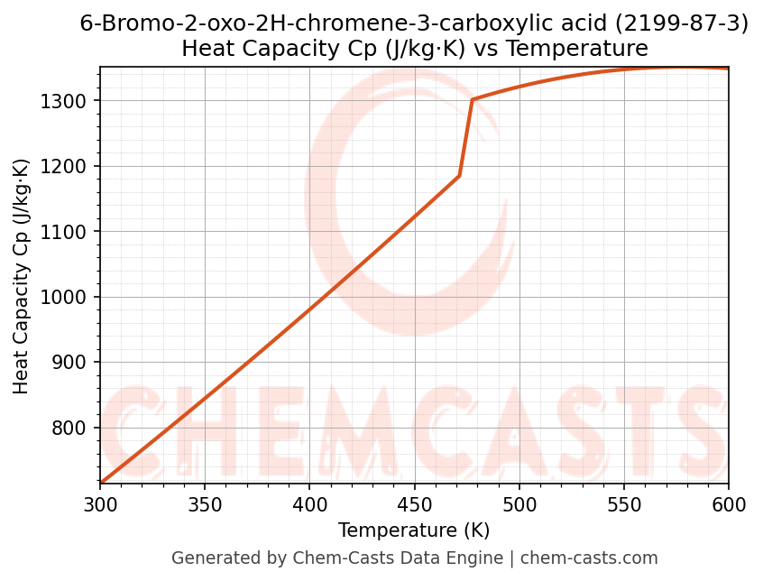 - Specific heat capacity (Cp) indicates the amount of energy required to raise the temperature of 6-Bromo-2-oxo-2H-chromene-3-carboxylic acid and is critical for energy balance and heat-exchanger design.