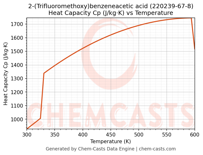 - Specific heat capacity (Cp) indicates the amount of energy required to raise the temperature of 2-(Trifluoromethoxy)benzeneacetic acid and is critical for energy balance and heat-exchanger design.