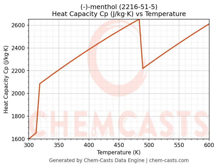 (-)-menthol Thermodynamic Properties vs Temperature (CAS 2216-51-5)
