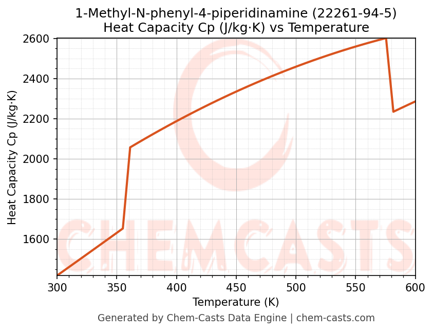 - Specific heat capacity (Cp) indicates the amount of energy required to raise the temperature of 1-Methyl-N-phenyl-4-piperidinamine and is critical for energy balance and heat-exchanger design.
