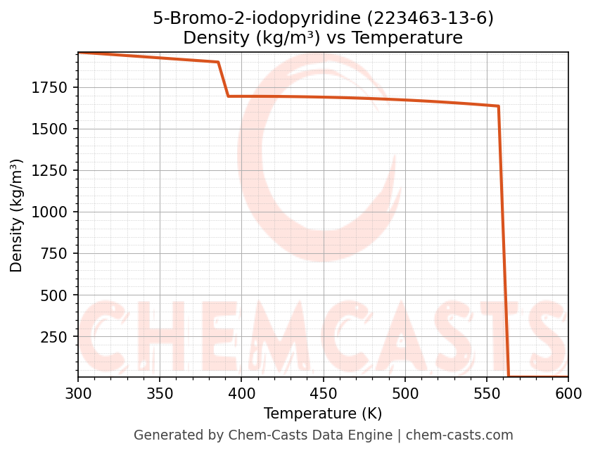 This page presents the temperature-dependent thermodynamic and transport properties of 5-Bromo-2-iodopyridine (CAS 223463-13-6) calculated at a constant pressure of 1 atm (101325 Pa) over the temperature range 250-500 K.