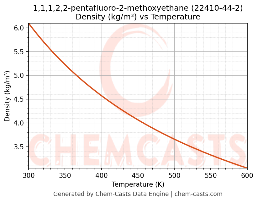 This page presents the temperature-dependent thermodynamic and transport properties of 1,1,1,2,2-pentafluoro-2-methoxyethane (CAS 22410-44-2) calculated at a constant pressure of 1 atm (101325 Pa) over the temperature range 250-500 K.