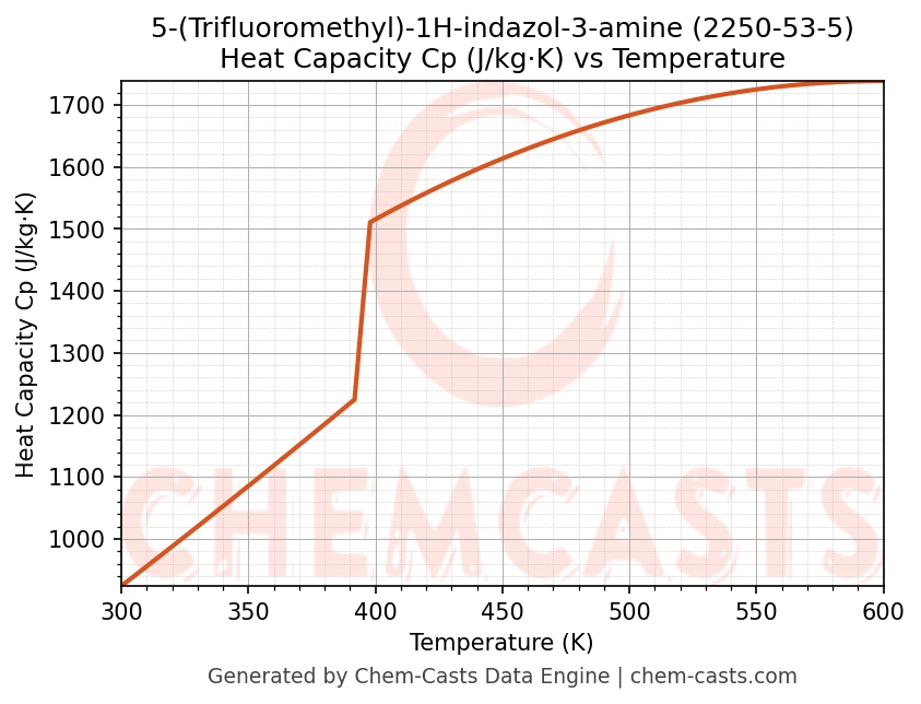 - Specific heat capacity (Cp) indicates the amount of energy required to raise the temperature of 5-(Trifluoromethyl)-1H-indazol-3-amine and is critical for energy balance and heat-exchanger design.
