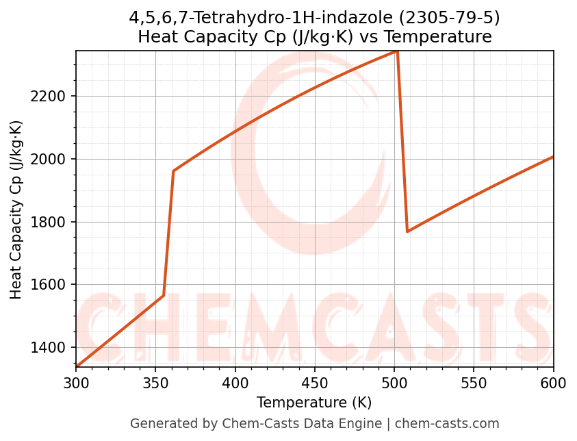 - Specific heat capacity (Cp) indicates the amount of energy required to raise the temperature of 4,5,6,7-Tetrahydro-1H-indazole and is critical for energy balance and heat-exchanger design.