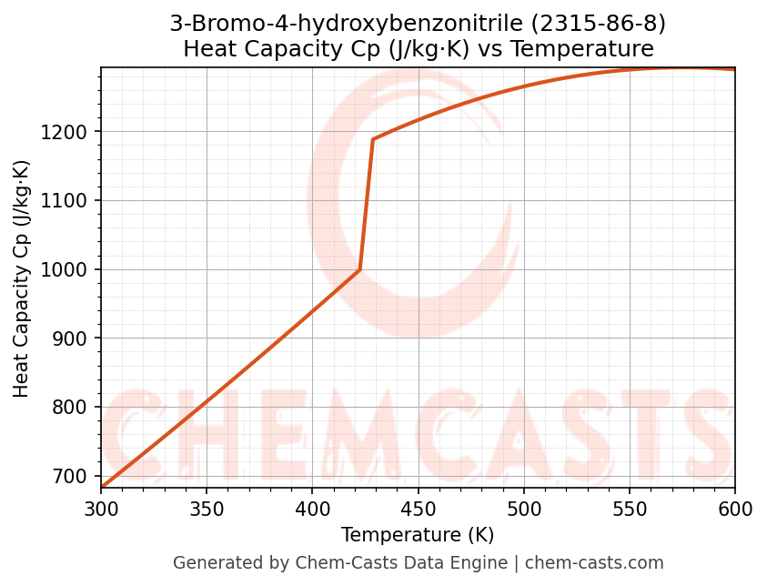 - Specific heat capacity (Cp) indicates the amount of energy required to raise the temperature of 3-Bromo-4-hydroxybenzonitrile and is critical for energy balance and heat-exchanger design.