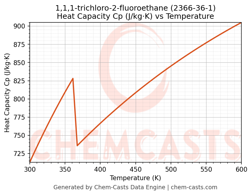 - Specific heat capacity (Cp) indicates the amount of energy required to raise the temperature of 1,1,1-trichloro-2-fluoroethane and is critical for energy balance and heat-exchanger design.