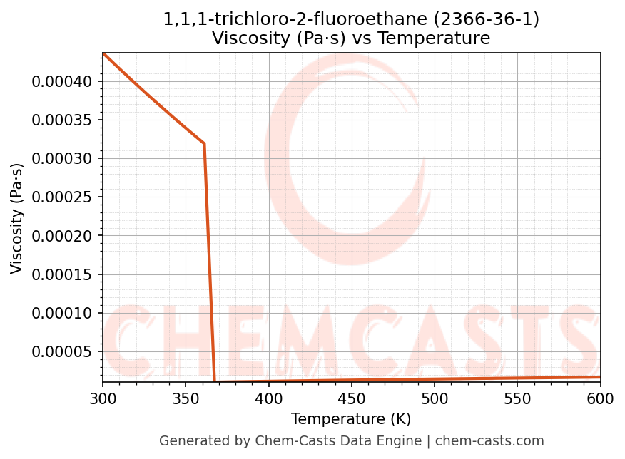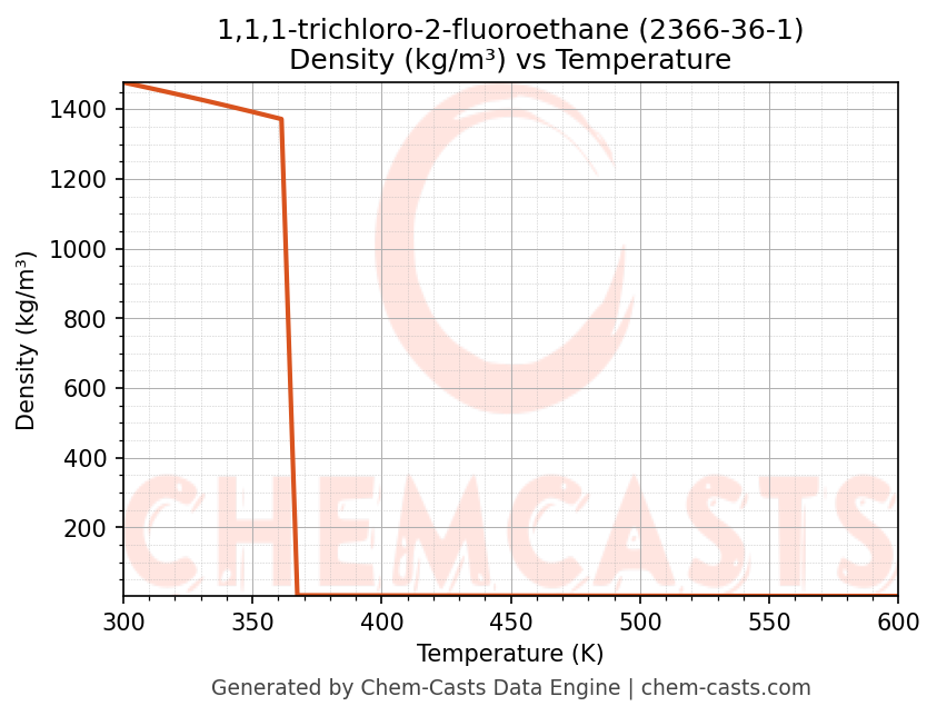This page presents the temperature-dependent thermodynamic and transport properties of 1,1,1-trichloro-2-fluoroethane (CAS 2366-36-1) calculated at a constant pressure of 1 atm (101325 Pa) over the temperature range 250-500 K.