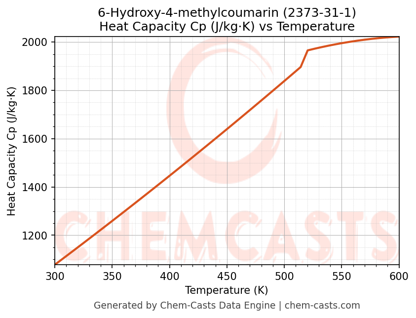 - Specific heat capacity (Cp) indicates the amount of energy required to raise the temperature of 6-Hydroxy-4-methylcoumarin and is critical for energy balance and heat-exchanger design.