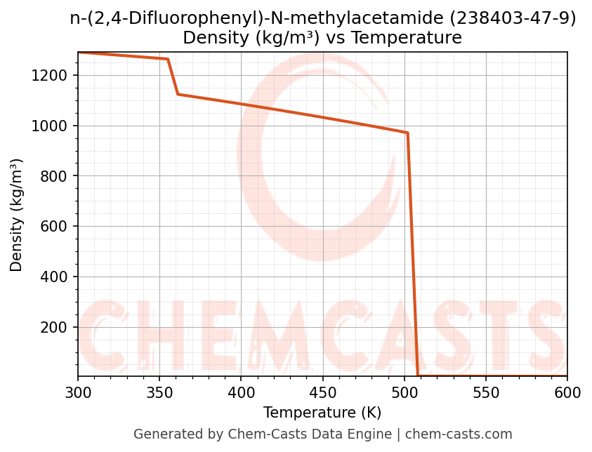 This page presents the temperature-dependent thermodynamic and transport properties of n-(2,4-Difluorophenyl)-N-methylacetamide (CAS 238403-47-9) calculated at a constant pressure of 1 atm (101325 Pa) over the temperature range 250-500 K.