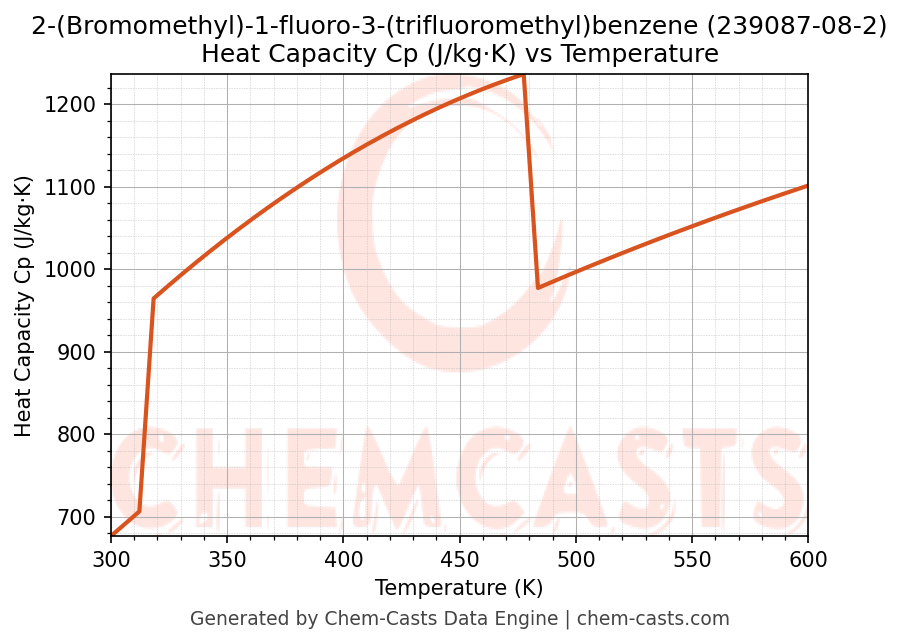 - Specific heat capacity (Cp) indicates the amount of energy required to raise the temperature of 2-(Bromomethyl)-1-fluoro-3-(trifluoromethyl)benzene and is critical for energy balance and heat-exchanger design.