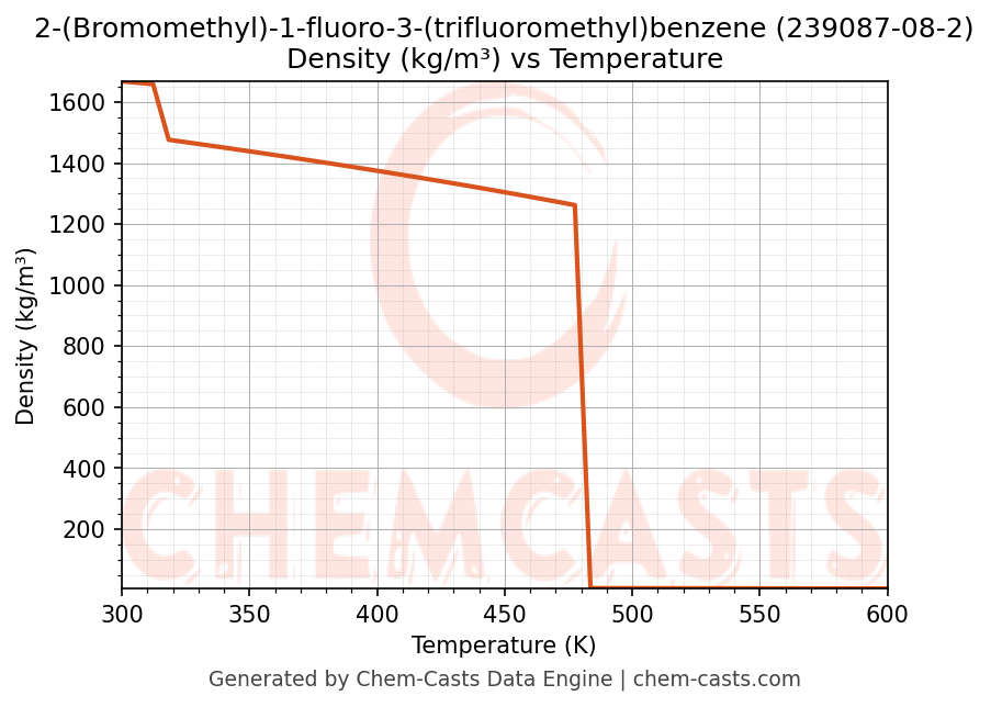 This page presents the temperature-dependent thermodynamic and transport properties of 2-(Bromomethyl)-1-fluoro-3-(trifluoromethyl)benzene (CAS 239087-08-2) calculated at a constant pressure of 1 atm (101325 Pa) over the temperature range 250-500 K.