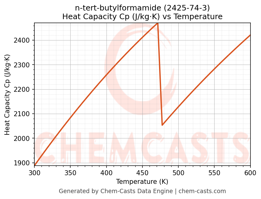 - Specific heat capacity (Cp) indicates the amount of energy required to raise the temperature of n-tert-butylformamide and is critical for energy balance and heat-exchanger design.