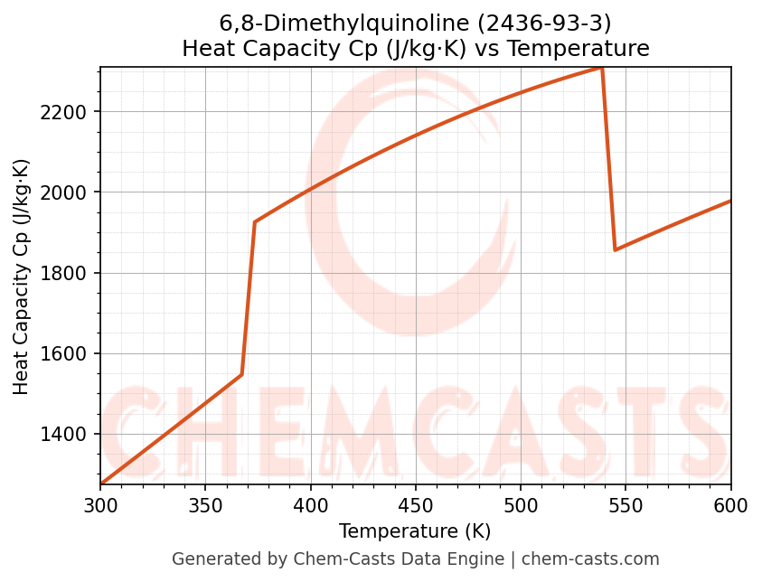 - Specific heat capacity (Cp) indicates the amount of energy required to raise the temperature of 6,8-Dimethylquinoline and is critical for energy balance and heat-exchanger design.