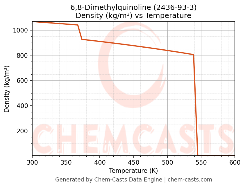 This page presents the temperature-dependent thermodynamic and transport properties of 6,8-Dimethylquinoline (CAS 2436-93-3) calculated at a constant pressure of 1 atm (101325 Pa) over the temperature range 250-500 K.