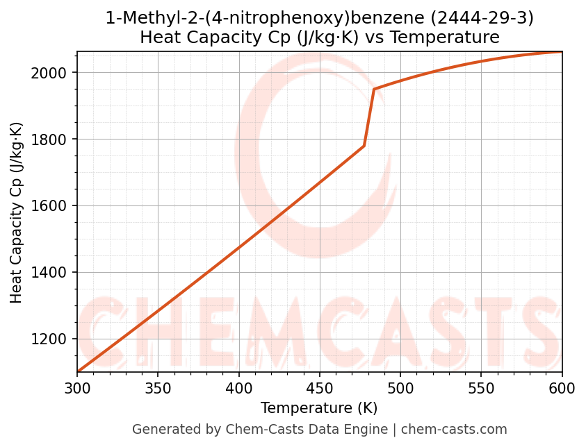 - Specific heat capacity (Cp) indicates the amount of energy required to raise the temperature of 1-Methyl-2-(4-nitrophenoxy)benzene and is critical for energy balance and heat-exchanger design.