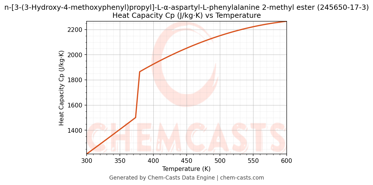 ![Heat Capacity (Cp) vs Temperature chart for n-[3-(3-Hydroxy-4-methoxyphenyl)propyl]-L-α-aspartyl-L-phenylalanine 2-methyl ester (CAS 245650-17-3)](https://chemcasts-prod.s3.ap-south-1.amazonaws.com/chem_plots_pconst/245650-17-3-cp.png)