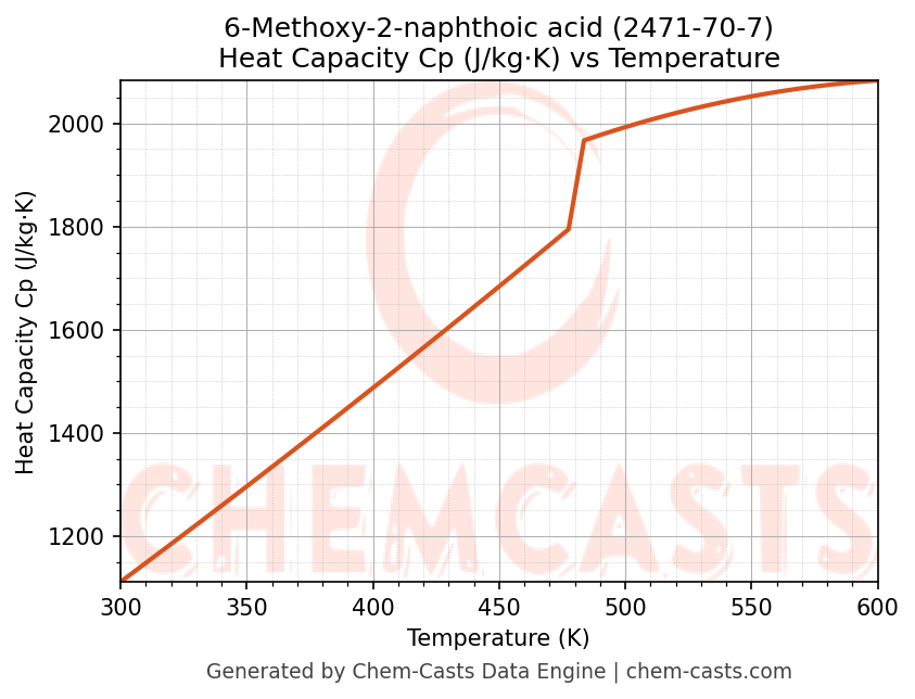 - Specific heat capacity (Cp) indicates the amount of energy required to raise the temperature of 6-Methoxy-2-naphthoic acid and is critical for energy balance and heat-exchanger design.
