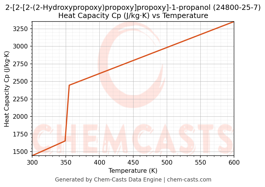 ![Heat Capacity (Cp) vs Temperature chart for 2-[2-[2-(2-Hydroxypropoxy)propoxy]propoxy]-1-propanol (CAS 24800-25-7)](https://chemcasts-prod.s3.ap-south-1.amazonaws.com/chem_plots_pconst/24800-25-7-cp.png)