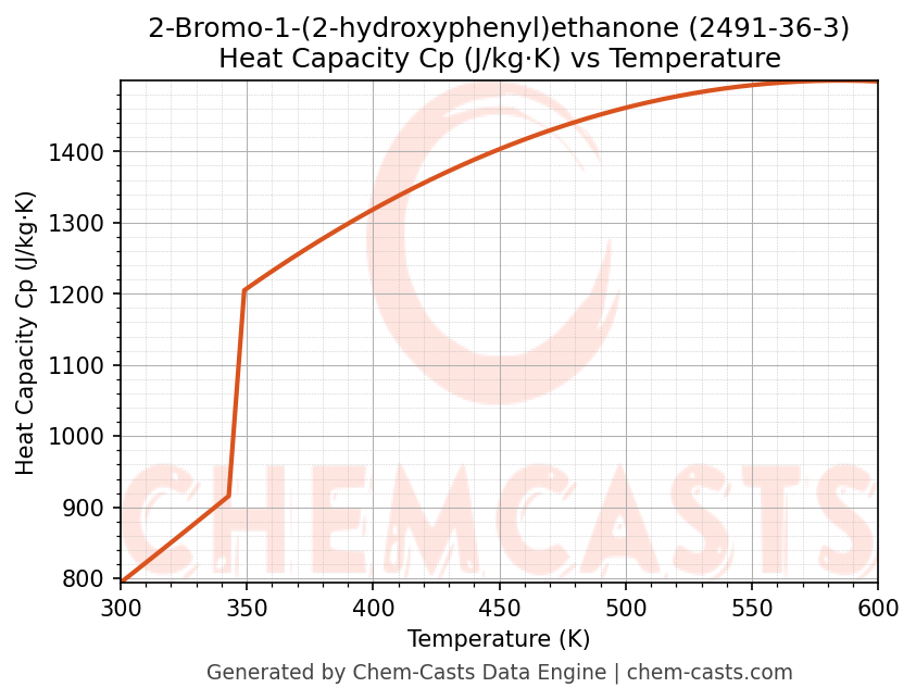 - Specific heat capacity (Cp) indicates the amount of energy required to raise the temperature of 2-Bromo-1-(2-hydroxyphenyl)ethanone and is critical for energy balance and heat-exchanger design.