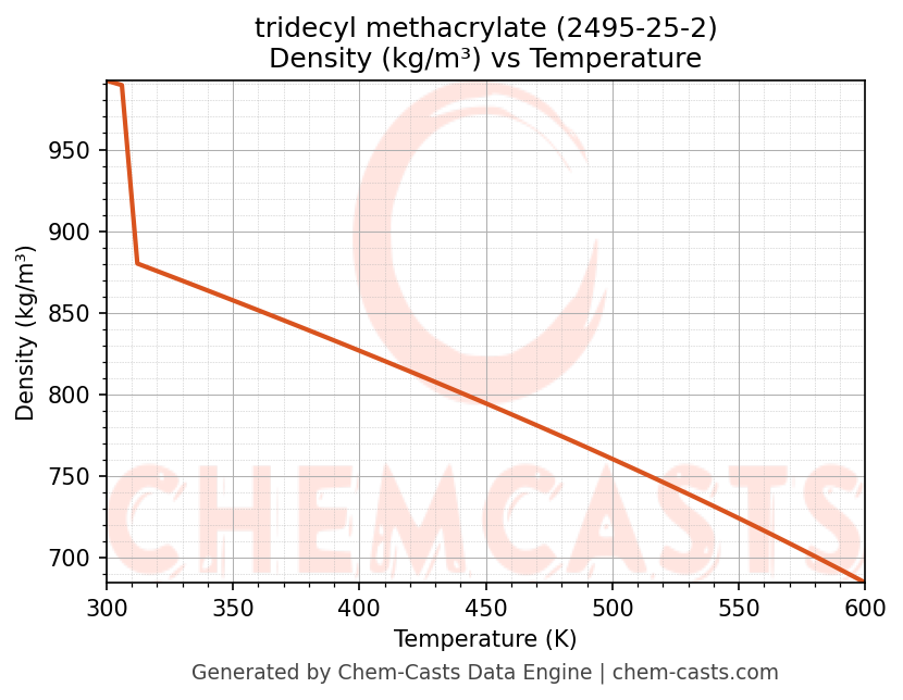 tridecyl methacrylate Thermodynamic Properties vs Temperature (CAS 2495-25-2)