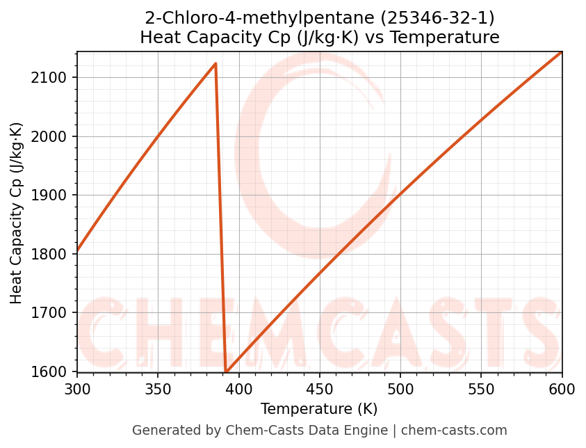- Specific heat capacity (Cp) indicates the amount of energy required to raise the temperature of 2-Chloro-4-methylpentane and is critical for energy balance and heat-exchanger design.