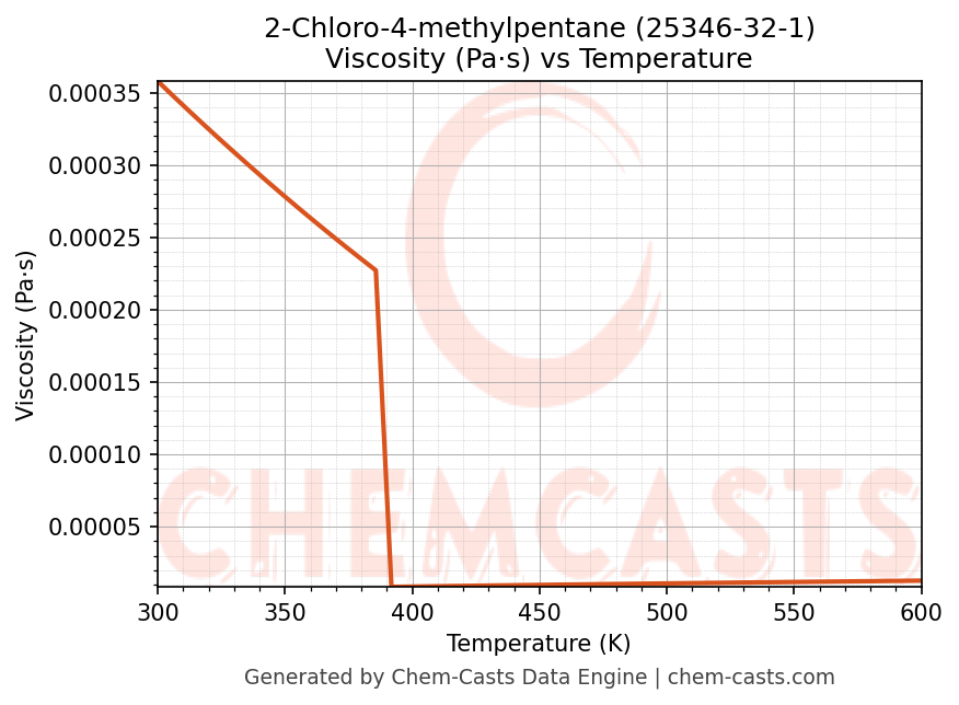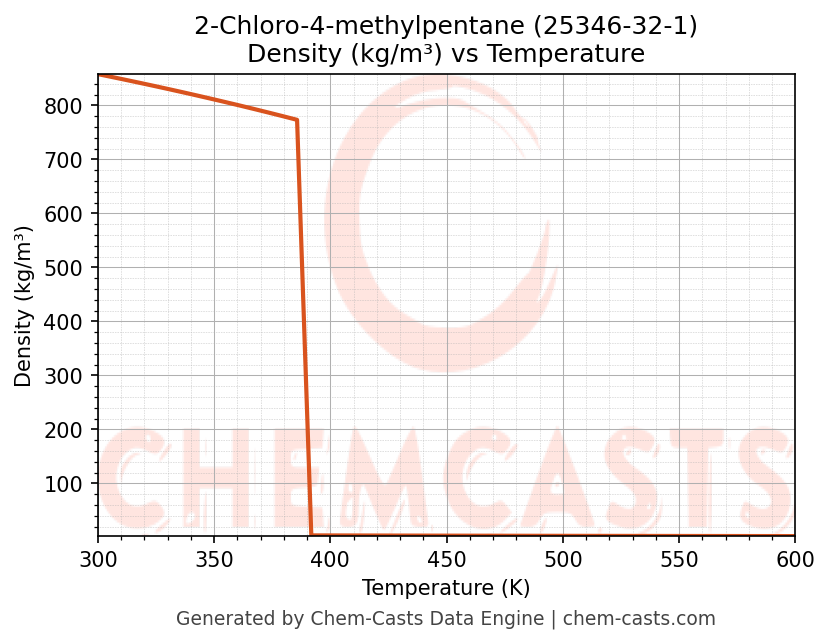 This page presents the temperature-dependent thermodynamic and transport properties of 2-Chloro-4-methylpentane (CAS 25346-32-1) calculated at a constant pressure of 1 atm (101325 Pa) over the temperature range 250-500 K.