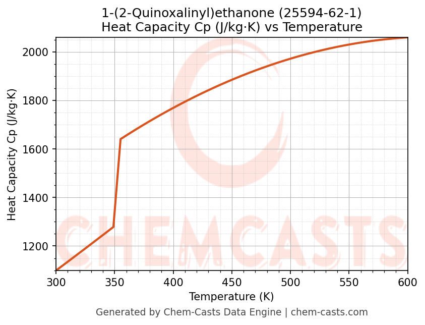 - Specific heat capacity (Cp) indicates the amount of energy required to raise the temperature of 1-(2-Quinoxalinyl)ethanone and is critical for energy balance and heat-exchanger design.