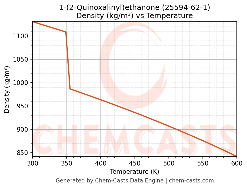 This page presents the temperature-dependent thermodynamic and transport properties of 1-(2-Quinoxalinyl)ethanone (CAS 25594-62-1) calculated at a constant pressure of 1 atm (101325 Pa) over the temperature range 250-500 K.