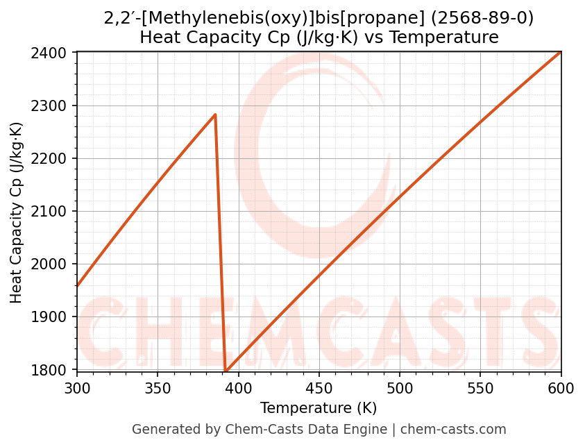 ![Heat Capacity (Cp) vs Temperature chart for 2,2′-[Methylenebis(oxy)]bis[propane] (CAS 2568-89-0)](https://chemcasts-prod.s3.ap-south-1.amazonaws.com/chem_plots_pconst/2568-89-0-cp.png)