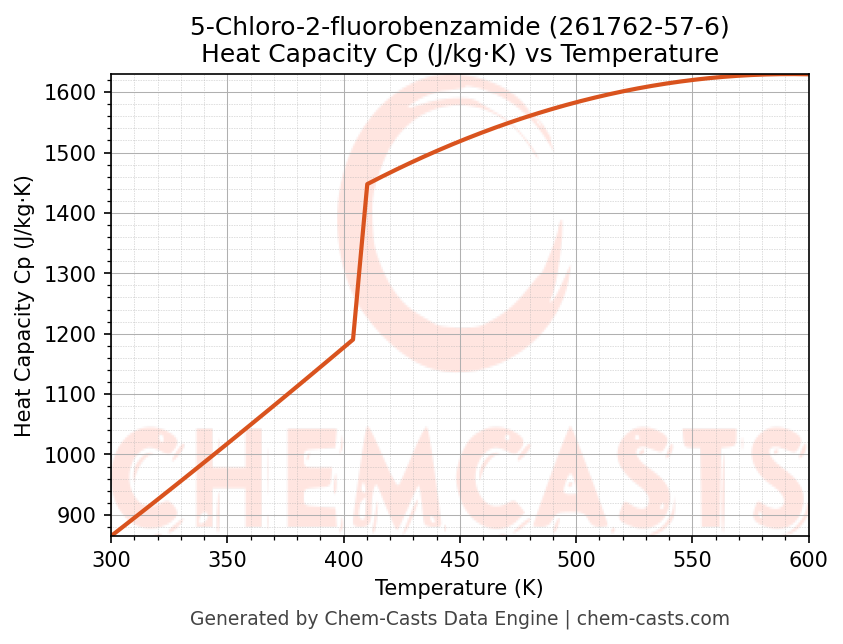 - Specific heat capacity (Cp) indicates the amount of energy required to raise the temperature of 5-Chloro-2-fluorobenzamide and is critical for energy balance and heat-exchanger design.