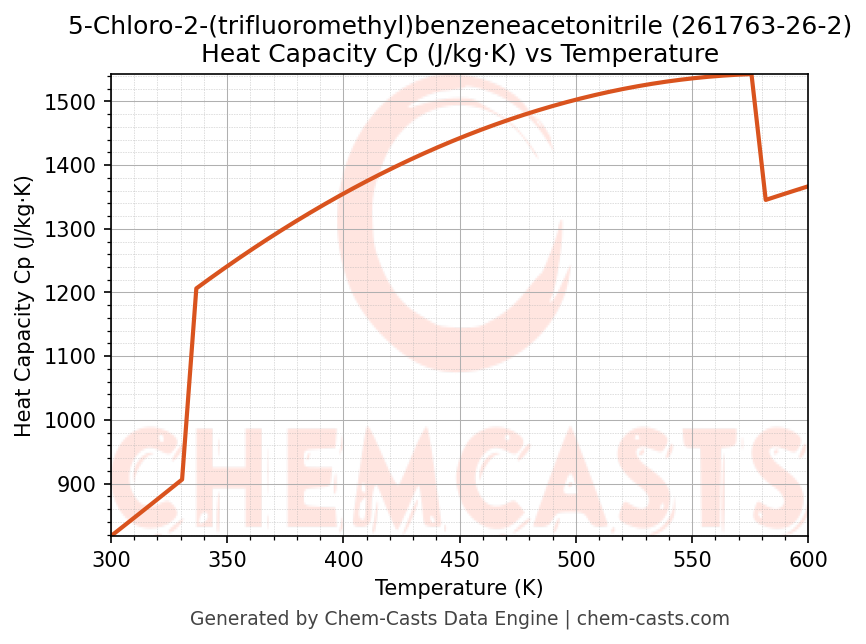 - Specific heat capacity (Cp) indicates the amount of energy required to raise the temperature of 5-Chloro-2-(trifluoromethyl)benzeneacetonitrile and is critical for energy balance and heat-exchanger design.