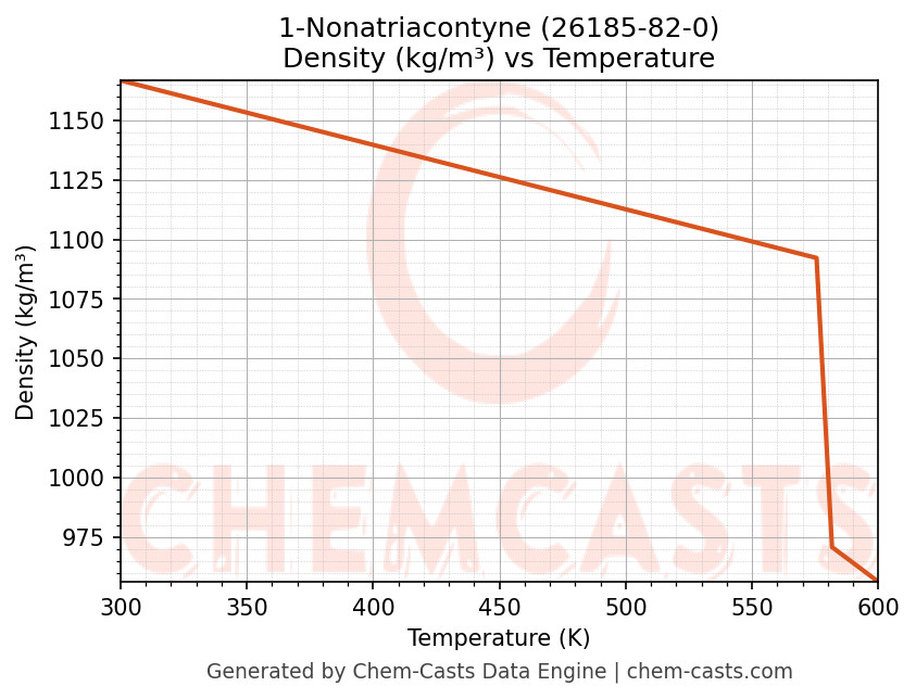 This page presents the temperature-dependent thermodynamic and transport properties of 1-Nonatriacontyne (CAS 26185-82-0) calculated at a constant pressure of 1 atm (101325 Pa) over the temperature range 250-500 K.